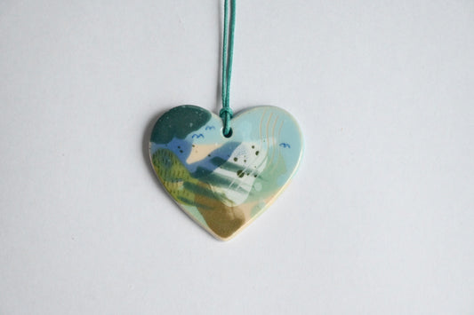 Ceramic Hanging Decoration - Mountains Meet The Sea Heart