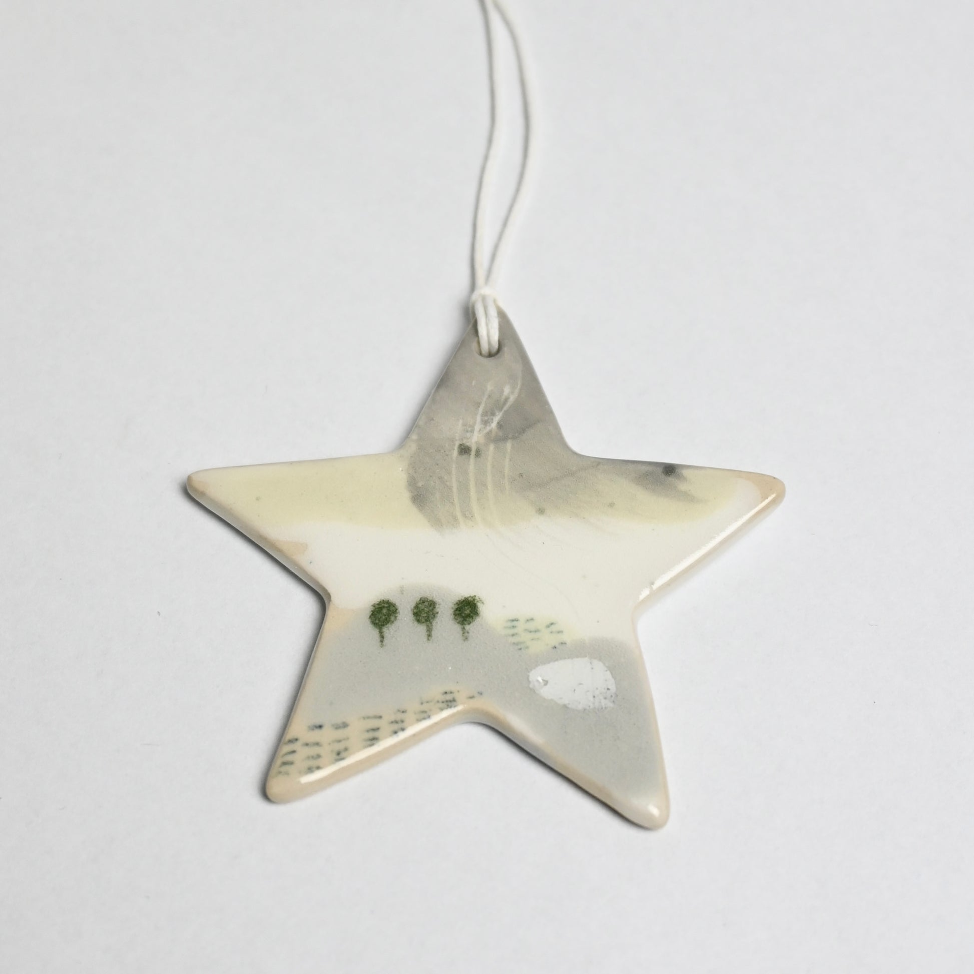 Ceramic Hanging Decoration - Snowy Landscape Large Star