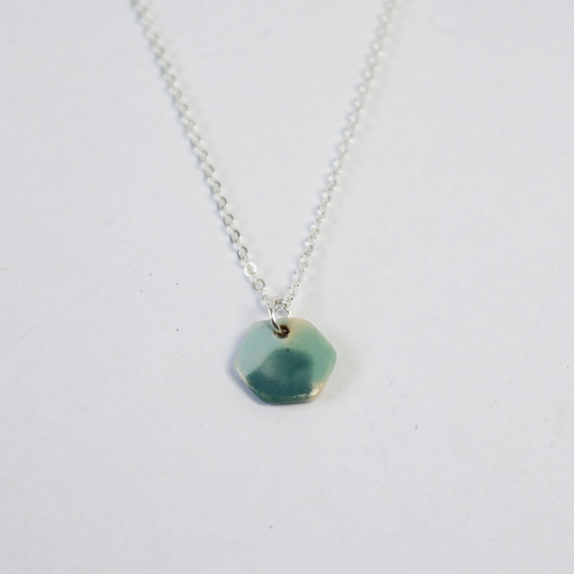 Ceramic Necklace - Small Landscape Hexagon Silver